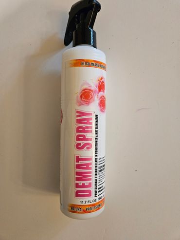 Kelco D-Mat Spray De Mat Spray is a ready to use leave in conditioner. It's a thin, white conditioner and mat eliminator with sun screen. De Mat Spray decreases grooming time while repelling dust ...